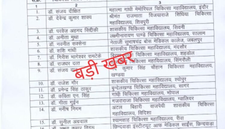 Breaking News : मध्य प्रदेश के 18 मेडिकल कॉलेज के डीन बदले गए