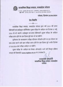 मध्य प्रदेश माध्यमिक शिक्षा मंडल की पूरक परीक्षा को लेकर जारी हुआ नोटिफिकेशन