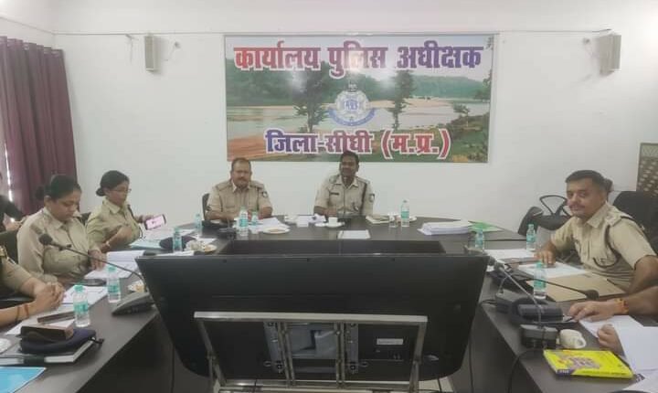 पुलिस अधीक्षक कार्यालय सीधी स्थित सभागार में जिले की कानून व्यवस्था की स्थिति, विगत माह की कार्यवाहियों का जायजा लेने के लिये पुलिस अधीक्षक सीधी डॉ. रविन्द्र वर्मा द्वारा 29 अप्रैल 2024 को मासिक अपराध गोष्ठी का आयोजन किया गया। गोष्ठी में अतिरिक्त पुलिस अधीक्षक सीधी अरविन्द श्रीवास्तव, उप पुलिस अधीक्षक (मुख्या.) गायत्री तिवारी, एसडीओपी चुरहट एवं प्रभारी उप पुलिस अधीक्षक अजाक) आशुतोष द्विवेदी, अनुविभागीय अधिकारी पुलिस कुसमी सुश्री रोशनी सिंह ठाकुर एवं समस्त थाना एवं चौकी के प्रभारी तथा पुलिस अधीक्षक कार्यालय का स्टाफ मौजूद रहा।