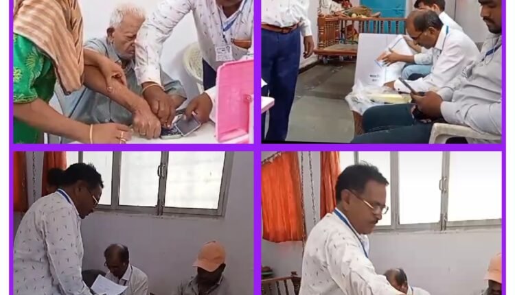 80 वर्ष से ज्यादा उम्र के बुजुर्ग मतदाताओ को घर घर जाकर पोलिंग बूथ बना कर मतदान करवाया जा रहा है