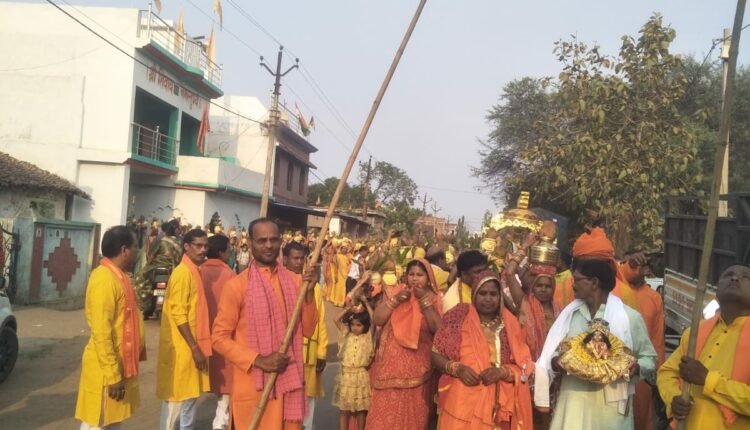 जनपद पंचायत पामगढ़ के अंतर्गत आने वाले मां चंडी के पावन धरा व आदर्श ग्राम पंचायत खोरसी में घटस्थापना एवं कलशयात्रा के साथ नौ दिवसीय शिव कथा महोत्सव का प्रारंभ दिनांक 14 मई 2024 को हो गया जिसमें कथा व्यास पंडित श्री रमेश कुमार शुक्ला जी लखनपुर खीरी (लखनऊ उत्तर प्रदेश) हो। सुसज्जित रथ में शिव पार्वती की मनोहर झांकी निकाली गई गांव की महिलाओं माताएं बहनें कलशयात्रा निकाली गई शिव कथा महोत्सव के राधे मित्र मंडली खोरसी द्वारा आयोजित किया जा रहा है के शिव पुराण कथा के माध्यम से मानव जाति के कल्याण एवं सुख समृद्धि के लिए आयोजन किया जा रहा है कथा के प्रथम दिवस को कलशयात्रा निकाली गई जो ग्राम के मुख्य मार्ग होते हुए ग्राम के मुख्य तालाब जिन्हें पनखत्ती तालाब कहा जाता है जहां पर मां चंडी दाई विराजित है वहां पानी भरकर कथा स्थल ले जाया गया जहां पर घट स्थापना किया गया इसके पूर्व कथा व्यास पंडित श्री रमेश कुमार शुक्ला जी लखनपुर खीरी लखनऊ द्वारा मां चंडी दाई मंदिर में पूजा अर्चना एवं द्वीप प्रज्जविलत किया गया और कथा के सफल समाप्ति के लिए कामना की गई। कथा के प्रथम दिवस कथा पंडाल में उपस्थित श्रोता समाज एवं भक्त जनों को संबोधित करते हुए कथा व्यास पंडित श्री रमेश कुमार शुक्ला जी लखनपुर खीरी लखनऊ द्वारा शिव कथा महोत्सव के महत्व पर प्रकाश डालते हुए कहा कि शिव कथा एक ऐसी कथा है जिसके श्रवणमात्र से व्यक्ति भव रुपी सागर से पार हो जाता है कलशयात्रा के दौरान राधे मित्र मंडली के सदस्यों द्वारा जगह जगह पेयजल आपूर्ति की सुविधा उपलब्ध कराई गई। इस प्रकार कलशयात्रा में ग्राम पंचायत खोरसी के सभी माताओं एवं बहनों ने बढ़ चढ़कर अपनी सहभागिता सुनिश्चित किया कलशयात्रा को सफल बनाने के लिए ग्राम पंचायत खोरसी के सरपंच श्री खीखराम चौहान जी, श्रीमान प्रशांत कुमार दुबे जी उपसरपंच ग्राम पंचायत खोरसी, श्री खेदनाथ साहू, दीपक कुमार दुबे , पुरुषोत्तम साहू , रामकुमार साहू, शंकर लाल साहू, राजकुमार साहू, राम कीर्तन साहू, चंद्रकुमार साहू, सुभाष साहू, रामप्रसाद साहू ,गोपेलाल साहू गौरीशंकर यादव, रविशंकर यादव , अश्विनी साहू , बरसाती साहू, विष्णु साह ग्रामीण जनों में लकेश्वर साहू, रिपुसुदन पटेल, भरथरी चौहान,मनोज कुमार गोंड़, संतोष साहू, सुन्दर लाल सोन, एवं मातृशक्तियो का सराहनीय योगदान रहा।