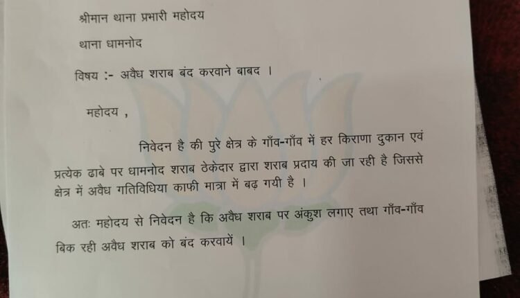 अवैध शराब बिक्री को लेकर धामनोद सहित आसपास के तीन भाजपा के मंडल अध्यक्षों ने धामनोद थाने पर दिया ज्ञापन