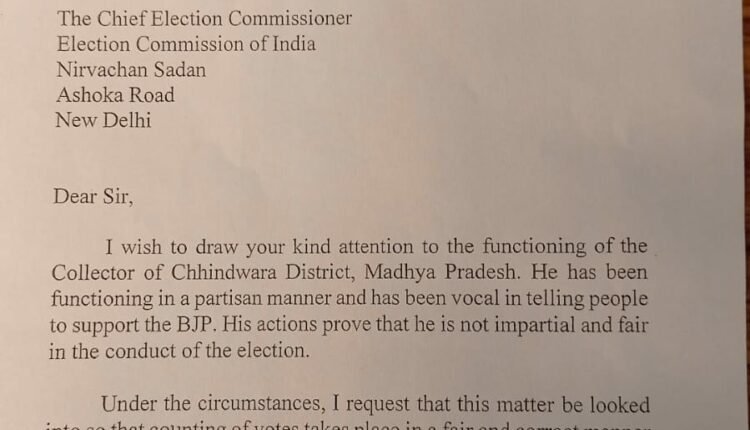 चुनावों में BJP की मदद करने का छिंदवाड़ा कलेक्टर शीलेन्द्र सिंह पर लगाया आरोप