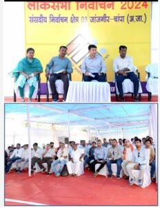 जांजगीर-चांपा 03 जून 2024/ लोक सभा निर्वाचन 2024 के मतगणना तैयारियों के संबंध में कलेक्टर एवं जिला निर्वाचन अधिकारी आकाश छिकारा द्वारा मतगणना स्थल (शासकीय पॉलीटेक्निक कालेज जांजगीर) में प्रेसवार्ता कर तैयारी संबंधी जानकारी दी गई। इस अवसर पर अपर कलेक्टर एस पी वैद्य, जिला पंचायत सीईओ गोकुल कुमार रावटे, उप जिला निर्वाचन अधिकारी श्रीमती निशा नेताम मड़ावी सहित संबंधित अधिकारी कर्मचारी एवं मीडिया संस्थान के प्रतिनिधि उपस्थित रहें।