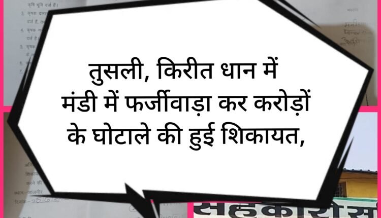 *तुसली, किरीत धान में मंडी में फर्जीवाड़ा कर करोड़ों के घोटाले की हुई शिकायत, कॉवरेज में गए मीडिया की टीम साथ मंडी प्रभारी और उनके बड़े बेटे ने किया बत्तमीजी।