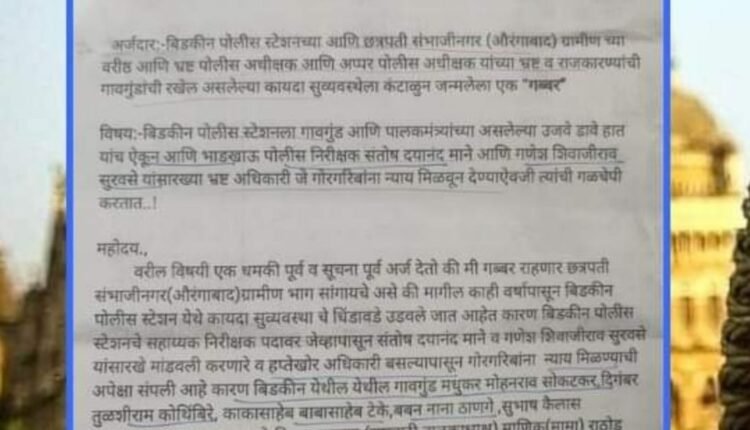 खास बात यह है कि खुद को गब्बर बताने वाले इस शख्स ने लेटर में यह भी लिखा है कि ‘रिश्वत मत लेना वरना गब्बर आएगा’। पत्र में यह भी उल्लेख किया गया है कि “अब से, औरंगाबाद शहर में अपराध का एक नया अध्याय: मैं शुरू करूंगा, मैं जितनी जल्दी हो सके उन सभी का नरसंहार करूंगा, हम भरे चौक में AK47 के साथ उनका नरसंहार करेंगे।”