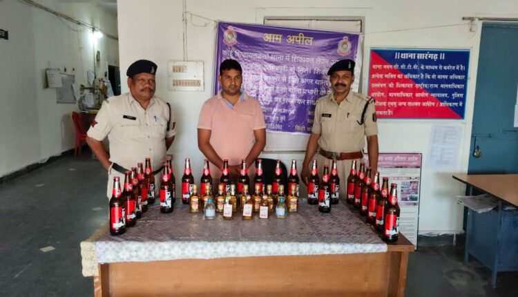 सारंगढ़-बिलाईगढ़ । पुलिस अधीक्षक पुष्कर शर्मा के द्वारा अवैध शराब बिक्री में संलिप्त व्यक्तियों के विरुद्ध सख्त कार्यवाही किये जाने के निर्देश के परिपालन में थाना प्रभारी कोतवाली सारंगढ़ निरीक्षक कामिल हक के मार्ग दर्शन में थाना सिटी कोतवाली सारंगढ़ के पुलिस टीम के द्वारा विशेष अभियान चलाकर अवैध शराब बिक्रि करने वाले जायसवाल ढाबा के संचालक सुनील जायसवाल पिता राधेश्याम जायसवाल उम्र 44 वर्ष निवासी टेंगनापाली थाना सिटी कोतवाली सांरगढ के कब्जे से 23 बाॅटल सिम्बा बियर प्रत्येक 650 एमएल जुमला-14 लीटर 950 एमएल कीमती-5060 रू0, एक नीला गुलाबी झोला के अंदर 09 पाव मैकडावल नंबर वन अंग्रेजी विस्की शराब जुमला-1620 एमएल कीमती-1890 रू0, 02 पाव देशी प्लेन मदिरा जुमला-360 एमएल कीमती-180 रू0, .3 पाव अंग्रेजी गोवा स्पेशल विस्की शराब जुमला-540 एमएल कीमती-390 रू0 कुल जुमला शराब- 17 लीटर 470 एमएल कुल जुमला कीमती-7520 रू0 को जप्त कर आबकारी एक्ट के तहत विधिवत कार्यवाही करते हुये आरोपी को गिरफ्तार कर न्यायिक रिमाण्ड पर भेजा गया है।