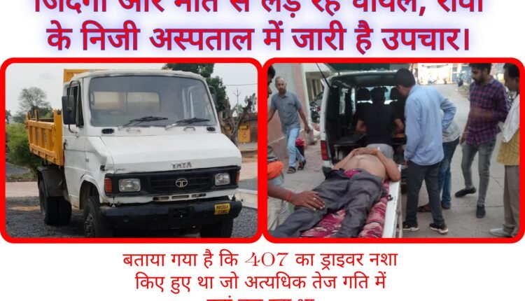 घटना 21 जून शुक्रवार की बताई जा रही है जहां सीधी जिले के मझौली थाना अंतर्गत ताला आकाश नगर में सीधी ब्यौहारी रोड के मरम्मत का कार्य कर रही अरुण कांट्रेक्शन कंपनी के साइड इंचार्ज एवं पेपर मशीन के हेल्पर के 407 वाहन की चपेट में आ जाने से दोनों को गंभीर चोटे आई है जिनका उपचार रीवा के निजी अस्पताल में जारी है। जो जिंदगी और मौत से लड़ रहे हैं।
