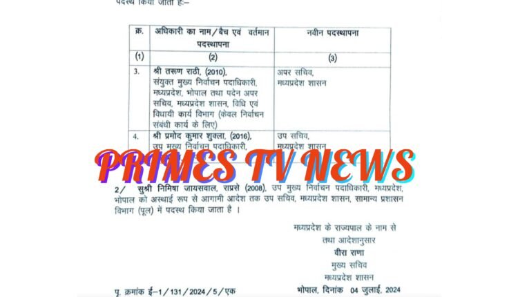 Breaking News : मध्यप्रदेश में IAS अधिकारियो की नवीन पदस्थापना