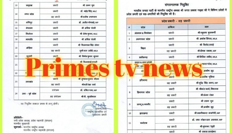 *भारतीय जनता पार्टी द्वारा नवनियुक्त प्रदेश प्रभारियों एवं सह प्रभारियों की घोषणा की।*