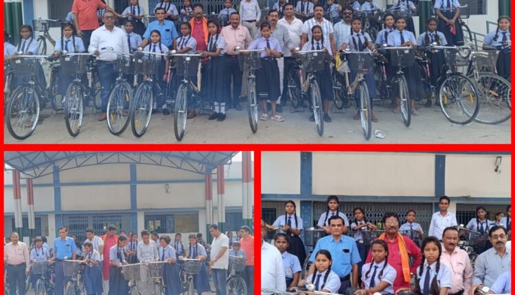 स्वामी आत्मानंद उत्कृष्ट विद्यालय शिवरीनारायण में साईकिल वितरण किया गया