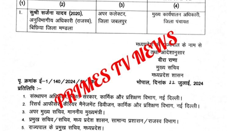 भोपाल। 2020 बैच की IAS सर्जन यादव का हुआ ट्रांसफर, IAS सर्जना यादव बनी अपर कलेक्टर जबल
