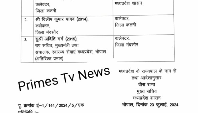ट्रांसफर, इन जिलें के बदले कलेक्टर, देखें आदेश ,दिलीप कुमार यादव बने कटनी कलेक्टर,अदिति गर्ग बनी मंदसौर कलेक्टर, आईएएस तबादले…