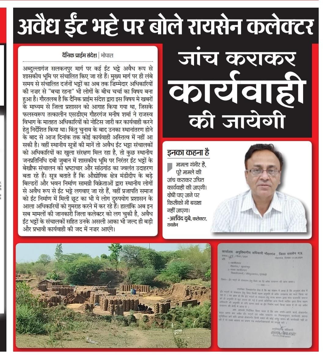 अवैध ईंट भट्टे पर बोले रायसेन कलेक्टर, जांच कराकर कार्यवाही की जायेगी
