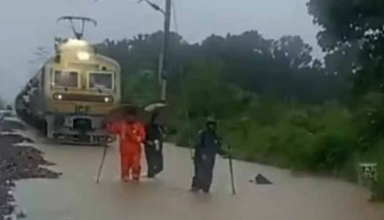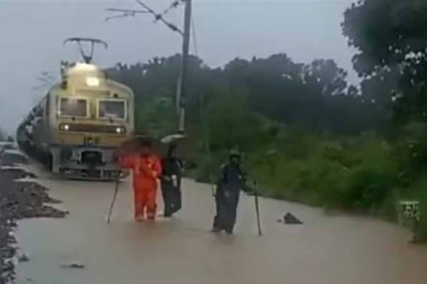 बारिश के पानी में डूबा रेलवे ट्रैक , ट्रैकमैन दिखा रहे रास्ता; वायरल हुआ वीडियो