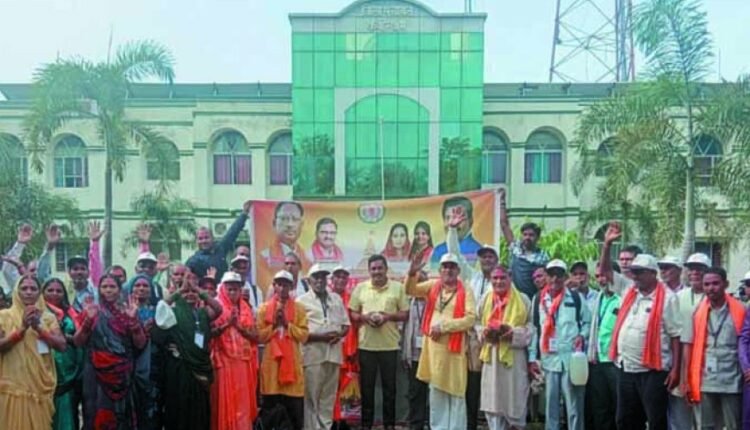 श्री रामलला दर्शन अयोध्याधाम योजना अंतर्गत कबीरधाम जिले के 71 श्रद्धालुओं का दल चार दिवसीय यात्रा पूर्ण कर आज वापस जिले में लौटा आया। श्रद्धालुओं के दल का जिला पंचायत प्रांगण में तिलक लगाकर एवं श्रीफल भेटकर आत्मीय स्वागत किया गया। इस दौरान श्री कैलाश चंद्रवंशी विशेष रूप से उपस्थित थे।
