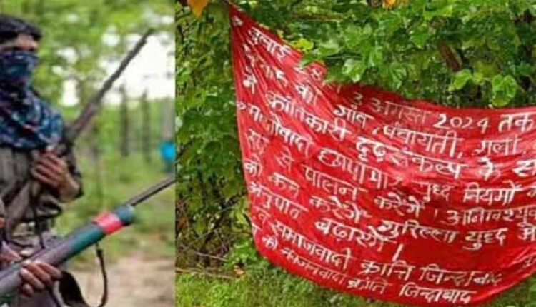 जानकारी के अनुसार जिला मुख्यालय से 10 किलोमीटर दूर मलांजकुडुम के घाटी के सड़क किनारे पेड़ पर बैनर पोस्टर लगाए हैं और बड़ी संख्या में पर्चे फेंके हैं. नक्सलियों ने बैनर में 28 जुलाई से 3 अगस्त तक नक्सलियों की शहीदी सप्ताह मनाने की अपील की. नक्सलियों ने बैनर में लिखा है कि क्रांतिकारियों के संकल्प के साथ हर गांव, पंचायत, कस्बे, गली और शहर में शहादत सप्ताह मनाएं.