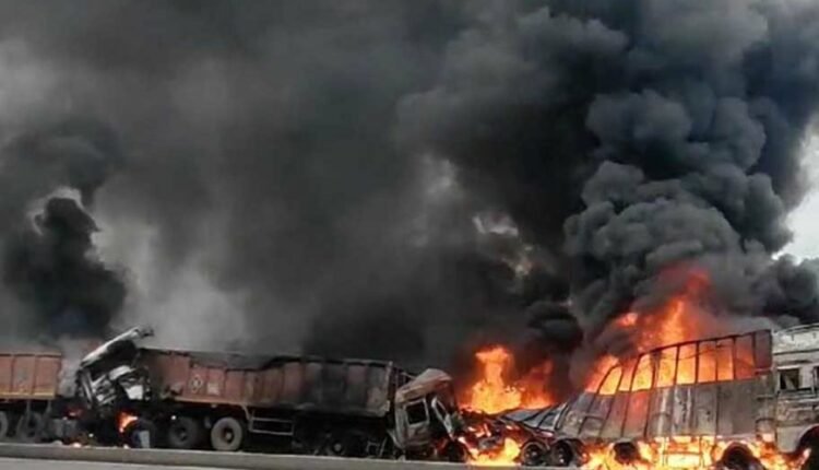 हादसे के बाद वाहनों में भीषण आग लग गई। रात को ही पुलिस और फायर ब्रिगेड ने तत्काल मौके पर पहुंचकर , करीब 3 घंटे की मशक्कत के बाद आग पर काबू पा लिया गया । इसके बाद सुबह 6:00 बजे वाहनों में फिर आग लग गई । देखते ही देखते तीनों वाहनों ने आग पकड़ ली।