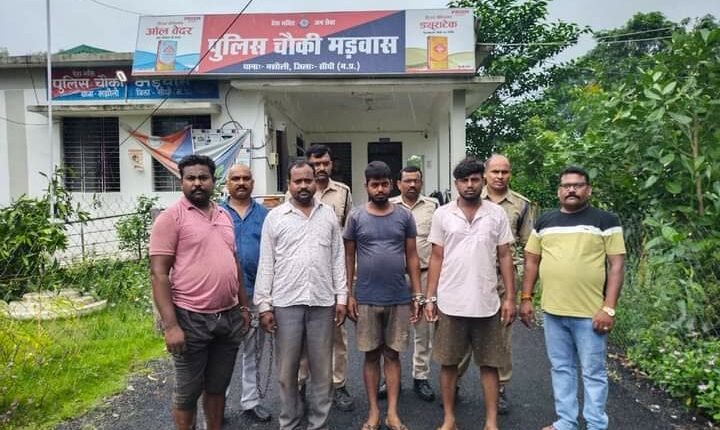 पुलिस द्वारा जारी प्रेस रिपोर्ट के जानकारी अनुसार फरियादी राजेश कुमार द्विवेदी पिता श्री भास्कर दत्त द्विवेदी उम्र 49 वर्ष निवासी हिनौता चौकी मडवास थाना मझौली जिला सीधी दिनांक 31.07.24 को थाना उपस्थित आकर इस आशय की रिपोर्ट किया कि दिनांक 30.07.2024 को रात्रि करीबन 8 से 9बजे के बीच मेरे भाई नारायण दास उर्फ लाला द्विवेदी राजेश कुशवाहा के घर के अंदर बैठकर राजेश कुशवाहा से बातचीत कर रहे थे उसी समय अमृतलाल उर्फ पप्पू गुप्ता व रिन्कू कुशवाहा आये और नारायणदास को मॉ बहन की गाली देते हुये बोले कि बाहर निकल तब नारायण दास बोले कि मैं बाहर ही हूं, इतने में अमृतलाल गुप्ता व रिन्कू कुशवाहा राजेश कुशवाहा के घर के अंदर घुस कर नारायण दास के साथ लाठी डंडा से मारपीट करने लगे तब राजेश कुशवाहा बीच बचाव करने लगा तो उसके साथ भी उक्त दोनो ने मारपीट कर मॉ बहन की गाली देते हुये बोले की तुम भाग जाओं नही तो तुम्हे भी जान से खत्म कर देंगे, तब राजेश हल्ला गोहार करते हुए गांव तरफ चले गये। उसी बीच नारायण दास द्विवेदी जान बचा कर राजेश के घर से बाहर भागने लगा तभी लालजी गुमा, राजमणि उर्फ लल्ला कुशवाहा, व बाबू कुशवाहा भी आ गये और मां बहन की अश्लील गालियां देकर लाठी डंडा एवं कुल्हाड़ी से मारपीट करने लगे जिससे नारायण दास वही राजवली कुशवाहा के खेत में बेहोश होकर गिर गये। मै वहा जाकर देखा तो मेरा भाई की थोडी थोडी सांसे चल रही थी एवं सिर एवं चेहेरे में गंभीर चोटे लगी थी तथा आँख कान से खून निकल रहा था। तब मैं परिवार वालो के साथ 100 डायल की मदत से सीएचसी मझौली अस्पताल ईलाज कराने लाया जहां डाक्टर साहब ने मृत घोषित कर दिये। मारपीट से राजेश कुशवाहा के सीना के नीचे, सीना के नीचे पसली, बाये कमर के नीचे दर्द है। अमृत लाल गुप्ता उर्फ पप्पू, लालजी गुप्ता, राजमणि उर्फ लल्ला कुशवाहा, रिन्कू कुशवाहा व बाबू कुशवाहा के द्वारा लाठी डंडा एवं कुल्हाड़ी से मारपीट व के कारण मेरे भाई नारायणदास द्विवेदी की मृत्यु हुई है। रिपोर्ट करने आया हूं, कार्यवाही की जाय। फरियादी की रिपोर्ट पर थाना मझौली में आरोपी अमृत लाल गुप्ता उर्फ पप्पू, लालजी गुप्ता, राजमणि उर्फ लल्ला कुशवाहा, रिन्कू कुशवाहा व बाबू कुशवाहा के विरूद्ध धारा 103(3), 296,115(2), 351(3), 332(ए,बी) एवं 3(5) बी.एन.एस. का अपराध कायम कर घटना की सूचना वरिष्ट अधिकारियों को दी गई । सूचना पर पुलिस अधीक्षक डॉ रविन्द्र वर्मा द्वारा तत्काल आरोपियों की गिरफ्तारी हेतु एसडीओपी कुसमी के नेतृत्व में टीम गठित कर रवाना किया गया जो टीम द्वारा 4 आरोपी (1) अमृत लाल गुप्ता उर्फ पप्पू निवासी हिनौता चौकी मड़वास थाना मझौली (2) लालजी गुप्ता निवासी हिनौता चौकी मड़वास थाना मझौली (3) रिन्कू कुशवाहा निवासी जुनैर चौकी मड़वास थाना मझौली (4) बाबू कुशवाहा निवास