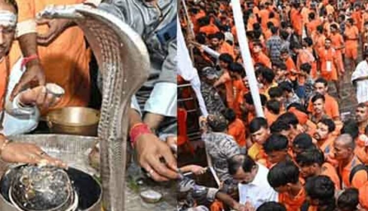आज सोमवार को दो हेलीकॉप्टर से भोरमदेव मंदिर परिसर के आसपास कांवरियों पर पुष्प वर्षा की गई। सीएम विष्णु देव साय व डिप्टी सीएम विजय शर्मा दोनों कबीरधाम पहुंचे हैं। मुख्यमंत्री साय प्रदेश की खुशहाली और समृद्धि के लिए मंदिर में विशेष पूजा-अर्चना और अभिषेक किया। तय कार्यक्रम के मुताबिक, मुख्यमंत्री विष्णुदेव साय आज सोमवार सुबह 7.05 बजे हेलीकॉप्टर द्वारा पुलिस ग्राउंड रायपुर से प्रस्थान कर 7.35 बजे पीजी कॉलेज हेलीपेड कवर्धा पहुंचे।