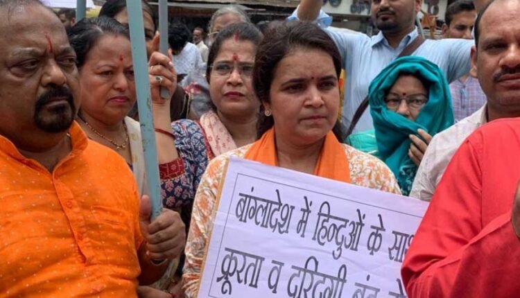 भारत सरकार बांग्ला देश के आंतरिक मामलों में हस्तक्षेप करके बांग्ला देश में रह रहे हिंदुओ की सुरक्षा हर हाल में सुनिश्चित करे. उक्त माँग सकल हिंदू समाज ने उद्धवदास मेहता आयोजन समिति के तत्वावधान में आयोजित विरोध प्रदर्शन में हिंदू जागरण मंच के प्रांत सह संयोजक बालेन्द्र सिंह कुशवाह के कहीं .. विरोध प्रदर्स्गण कर्फ़्यू माता मंदिर पीर गेट पर किया इस दौरान साध्वी रंजना जी की भी उपस्थिति रही .इस दौरस्न सकल हिंदू समाज के अनेक वक़्ताओ ने सभा को संबोधित किया