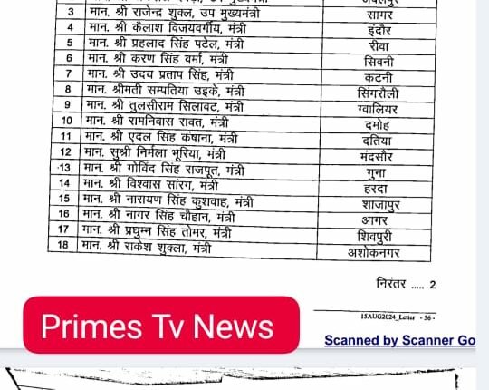 भोपाल । मध्य प्रदेश राज्य शासन द्वारा निर्णय लिया गया है कि 15 अगस्त 2024 को स्वतंत्रता दिवस के अवसर पर मुख्यमंत्री उपमुख्यमंत्री मंत्री गण और
