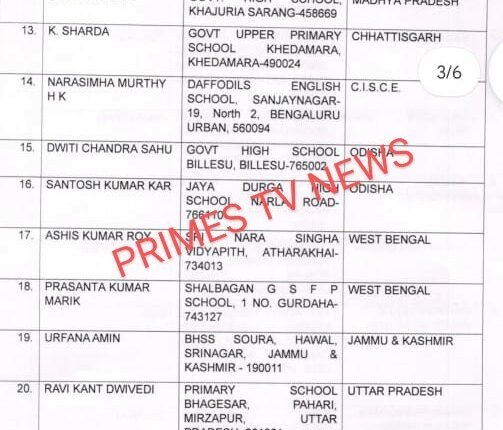 प्रदेश के दो शिक्षकों को राष्ट्रीय शिक्षक पुरस्कार से सम्मानित किया जाएगा…