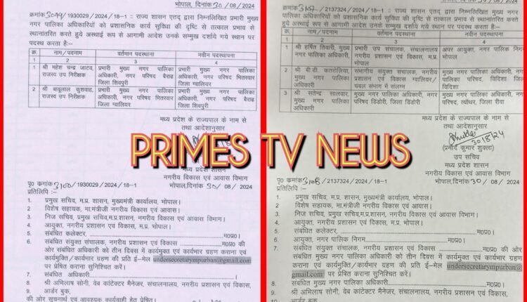 Breaking News : मध्यप्रदेश में नगरीय प्रशासन विभाग में तबादला