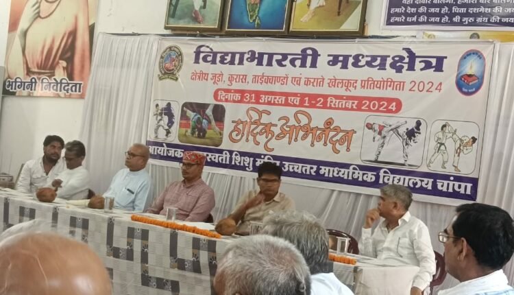 जांजगीर-चांपा – कोसा कासा कंचन नगरी चाम्पा में तिलबंदेश्वरा बाल कल्याण समिति चांपा द्वारा संचालित सरस्वती शिशु मंदिर उच्च माध्यमिक विद्यालय चांपा में विद्या भारती की योजना अनुसार सरस्वती शिक्षा संस्थान छत्तीसगढ़ के संयोजकत्व में प्रांतीय एवं क्षेत्रीय जुडो,कुरास, ताइक्वांडो एवम कराते खेलकूद प्रतियोगिता 2024 का आयोजन किया गया जिसमें 2 सितंबर सोमवार को समापन समारोह में बतौर मुख्य अतिथि मंत्री माननीय ओपी चौधरी ,वित्त, वाणिज़्कर आवास एवं पर्यावरण योजना आर्थिक व सांख्यिकी मंत्री छत्तीसगढ़ शासन रायपुर एवं प्रभारी मंत्री जिला जांजगीर चांपा की मौजूदगी में समापन कार्यक्रम संपन्न हुआ। कार्यक्रम में नन्हे मुन्ने बच्चों ने विभिन्न प्रकार की कलाओं का प्रदर्शन कर सभा कक्ष में उपस्थित सभी लोगों का मनमोहन लिया।कार्यक्रम में जिला प्रशासन के आला अधिकारी कर्मचारी, के साथ पार्टी के पधाधिकारी एवं कार्यकर्ता के साथ भारी संख्या में लोग उपस्थित रहे।