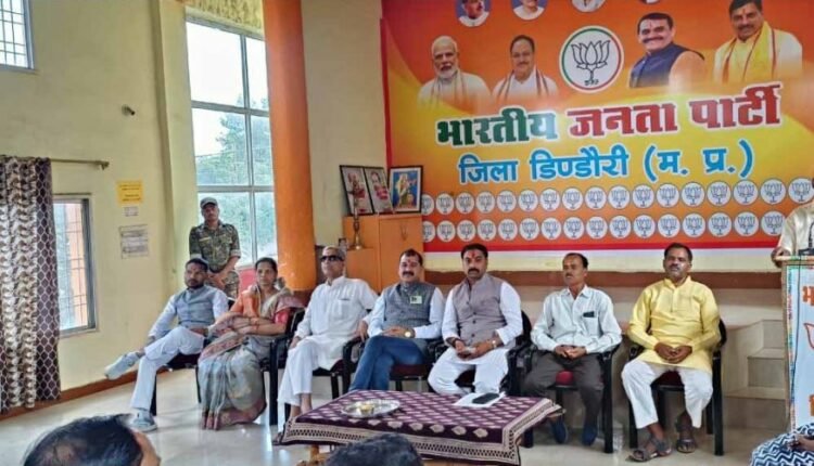 भारतीय जनता पार्टी जिला कार्यालय डिण्डौरी में भाजपा जिलाध्यक्ष अवध राज बिलैया की अध्यक्षता में सदस्यता अभियान मोर्चा प्रकोष्ठों की संयुक्त कार्यशाला का आयोजन किया गया। सर्वप्रथम सभी मंचासीन अतिथियों ने भारत माता, पं. दीनदयाल उपाध्याय, डाॅ. श्यामा प्रसाद मुखर्जी जी के तेलीय चित्र पर माल्यार्पण कर बैठक की शुरूआत की। भाजपा जिलाध्यक्ष अवध राज बिलैया ने संबोधित करते हुए कहा कि भारतीय जनता पार्टी संगठन और सरकार के माध्यम से समाज सशक्तिकरण में अपनी महत्वपूर्ण भूमिका निभा रही है। इसी कारण समाज की अपेक्षा हमसे बढ़ी है और समाज भारतीय जनता पार्टी को सामाजिक मूल्य व राष्ट्रवादी विचार पर आगे बढ़ते देखना चाहता है। पहले हमारी सदस्यता का क्रम आफलाइन था जिसें पूर्व राष्ट्रीय अध्यक्ष अमित शाह के नेतृत्व में 11 करोड़ सदस्य डिजीटल ऑनलाइन कर विश्व के सबसे बड़े राजनैतिक दल भाजपा बनी फिर पुनः सदस्यता करते हुए हम 18 करोड़ सदस्यता बाली पार्टी बन गये।  हम सभी को ज्ञात है कि हमारे संगठन में पुनः सदस्यता अभियान एक बार फिर प्रारंभ होने वाली है जिसकी शुरूआत देश के यशस्वी प्रधानमंत्री नरेन्द्र मोदी प्रारंभ करेगें।  हर बूथ पर हर जाति,वर्ग,व्यवसायी नागरिकों को भाजपा के सदस्य बनायेगे।  जिसके लिए प्रदेश का लक्ष्य डेढ़ करोड़ है एवं हमारे जिले को जो लक्ष्य मिला है वह एक लाख सदस्यता करना है जिसके लिए हमें हर मण्डल, शक्तिकेन्द्र व मतदान केन्द्रों मे केम्प लगाकर सदस्यता करना है।