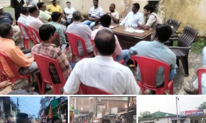 मनाए जा रहे गणेश उत्सव पर्व पर अतिक्रमण ग्रसित मझौली में मार्केट में उत्पन्न समस्या से नगर प्रशासन एवं जनप्रतिनिधि, लोगों द्वारा पुलिस प्रशासन को अवगत कराया गया जिसको दृष्टतगत रखते हुए नगर निरीक्षक मझौली दीपक सिंह, कार्यपालिक मजिस्ट्रेट वृत्त जोबा बाल्मीक साकेत, डॉ राकेश तिवारी पुलिस बल एवं पत्रकारों के साथ बैठक उपरांत में मार्केट मझौली पहुंच व्यवस्थाओं का जायजा लेते हुए जहां एक और नगर प्रशासन को संचित व्यवस्था बनाए जाने को लेकर निर्देशित किया गया है वहीं व्यापारियों को समझाइए देते हुए पीसीसी रोड तक सजाई गई दुकानों की सामग्री को वहां से हटवाते हुए समझाइए दी गई है कि चिन्हित की गई सीमा से आगे दुकाने ना सजाए ताकि जाम से निजात मिल सके लोगों व स्कूली बच्चों को आने जाने में कोई परेशानी ना हो। शांति एवं सुरक्षा व्यवस्था बनी रहे। अन्यथा की स्थिति में समुचित चलानी व दंडात्मक कार्यवाही की जाएगी। जहां व्यापारियों द्वारा पुलिस प्रशासन व तहसील प्रशासन के समझाइश पर खुशी खुशी अपनी दुकान नाली के ऊपर से हटा चिन्हित की गई सीमा के अंदर लगाई गई।