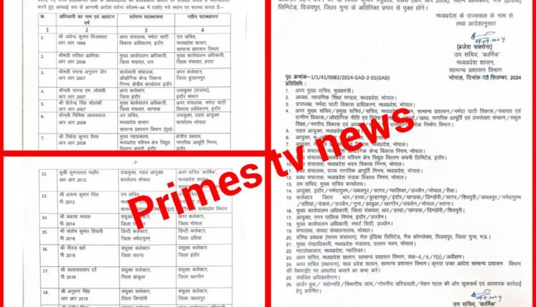 भोपाल । मध्यप्रदेश देर रात कई प्रशानिक अधिकारीयों के ट्रांसफर हुए ।