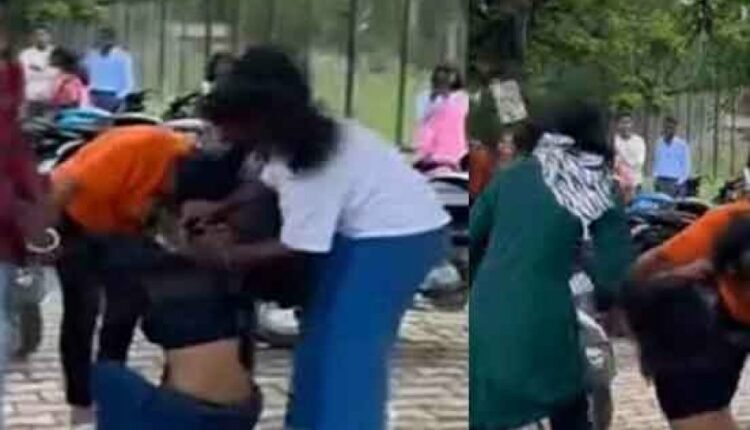 विवाद बढ़ने पर दोनों ने एक-दूसरे के बाल पकड़कर मारपीट शुरु कर दी। इस बीच देखते ही देखते दो-दो लड़कियों का गुट बन गया और दोनों के बीच मारपीट शुरू हो गई। इसी बीच दो लड़कियां एक युवती के बाल पकड़कर खींचने लगीं।