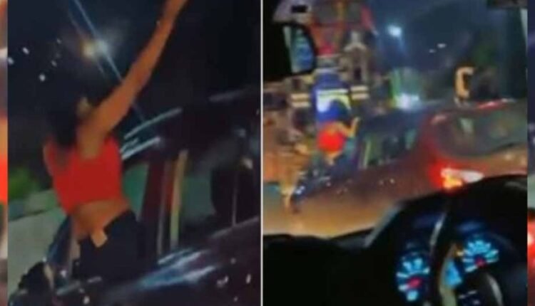 वीडियो में दिख रहा है कि एयरपोर्ट रोड पर रात के समय तेज़ रफ्तार कार की खिड़की से दो युवतियां बाहर निकलकर स्टंट कर रही हैं. पीछे चल रहे राहगीरों ने मोबाइल कैमरे में इस पूरे स्टंट को कैद कर लिया.