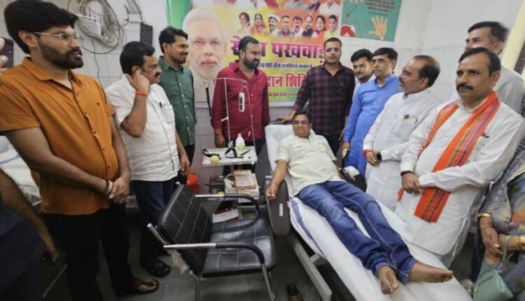 भारतीय जनता युवा मोर्चा छतरपुर द्वारा देश के यशस्वी प्रधानमंत्री नरेंद्र मोदी जी के जन्मदिवस को सेवा पखवाड़ा के रूप में मनाया जा रहा है। उसी के उपलक्ष में आज युवा मोर्चा के द्वारा जिलाध्यक्ष नीरज चतुर्वेदी के नेतृत्व में जिला अस्पताल छतरपुर में रक्तदान शिविर लगाया गया। जिसमें युवाओं ने ब्लड डोनेट कर सेवा पखवाड़ा के तहत मनाया पूरे जिले में युवा मोर्चा द्वारा विभिन्न प्रकार के सेवा कार्य के कार्यक्रम किए जा रहे है। इस दौरान भाजपा जिला अध्यक्ष चंद्रभान सिंह गौतम, राजनगर विधानसभा विधायक अरविंद पटेरिया,अशोक दुबे भाजपा जिला उपाध्यक्ष, नगर पालिका अध्यक्ष ज्योति सुरेंद्र चौरसिया एवं ,प्रदेश कार्य समिति सदस्य भाजपा युवा मोर्चा अंचल जैन शुभम चौधरी एवम युवा मोर्चा महामंत्री विक्की सिंह तोमर नरेंद्र यादव गुड्डू पाठक ऋषि नायक सचिन रवि सहित बड़ी संख्या में भाजपा कार्यकर्ता मौजूद रहे। अंचल जैन कार्यक्रम प्रभारी सेवा पखवाड़ा