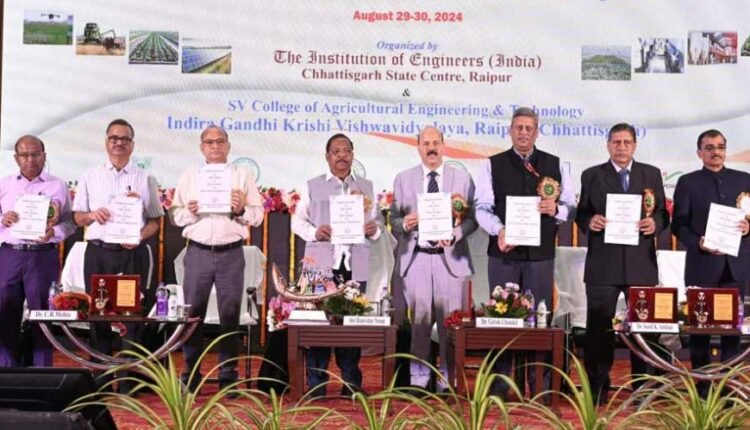 इस अवसर पर अतिथियों द्वारा कृषि अभियंताओं के राष्ट्रीय सम्मेलन सह संगोष्ठी पर प्रकाशित स्मारिका का विमोचन किया गया। इसके साथ ही इंदिरा गांधी कृषि विश्वविद्यालय द्वारा नवीन राष्ट्रीय शिक्षा नीति पर प्रकाशित पुस्तिका तथा 9 सितम्बर 2024 को आयोजित होने वाले बलराम जयंती समारोह के ब्रोशर का विमोचन भी किया गया। इस अवसर पर कृषि अभियांत्रिकी एवं प्रौद्योगिकी के क्षेत्र में उल्लेखनीय योगदान देने वाले कृषि अभियंताओं का सम्मान भी किया गया जिनमें डॉ. इन्द्रमणी मिश्रा, कुलपति वसंत राव नाईक, मराठवाड़ा कृषि विद्यापीठ परभणी, डॉ. टी.बी.एस. राजपूत, वरिष्ठ वैज्ञानिक, जल प्रौद्योगिकी केन्द्र, भारतीय कृषि अनुसंधान परिषद नई दिल्ली, डॉ. टी. विद्या लक्ष्मी, वरिष्ठ वैज्ञानिक केन्द्रीय पोस्ट हार्वेस्टिंग इंजीनियरिंग एवं प्रौद्योगिकी संस्थान (आई.सी.ए.आर. लुधियाना), डॉ. मधुरेश द्विवेदी सहायक प्राध्यापक, राष्ट्रीय प्रौद्योगिकी संस्थान राउरकेला तथा इं. राजकुमार श्रीवास संचालक शुभी एग्रोटेक प्राइवेट लिमिटेड रायपुर शामिल हैं। इस अवसर पर स्वामी विवेकानंद कृषि अभियांत्रिकी महाविद्यालय, इंदिरा गांधी कृषि विश्वविद्यालय, रायपुर के अधिष्ठाता डॉ. विनय पाण्डेय को लाईफटाइम अचीवमेन्ट अवार्ड से सम्मानित किया गया। इस अवसर पर वरिष्ठ प्रशासनिक अधिकारी, वैज्ञानिक एवं अभियंता उपस्थित थे।