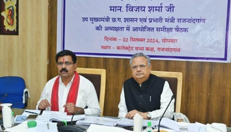 विधानसभा अध्यक्ष डॉ. रमन सिंह की उपस्थिति में उप मुख्यमंत्री एवं राजनांदगांव जिले के प्रभारी मंत्री विजय शर्मा की अध्यक्षता में राजनांदगांव जिला कलेक्टोरेट सभाकक्ष में विभागीय योजनाओं की समीक्षा बैठक आयोजित की गई। इस दौरान सांसद संतोष पाण्डेय उपस्थित थे।