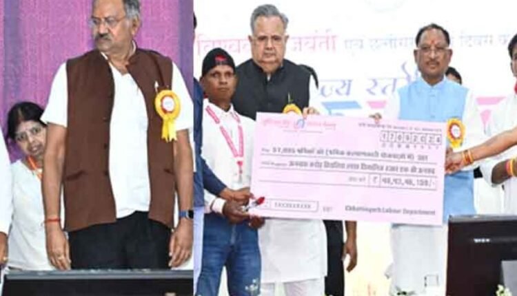 मुख्यमंत्री श्री विष्णु देव साय विश्वकर्मा जयंती के अवसर पर इंदिरा गाँधी कृषि विश्वविद्यालय स्थित कृषि मंडप में राज्यस्तरीय श्रमिक सम्मेलन में शामिल हुए। सम्मेलन में विधानसभा अध्यक्ष डॉ रमन सिंह, उपमुख्यमंत्री श्री विजय शर्मा, सांसद श्री बृजमोहन अग्रवाल, विधायक श्री ख़ुशवंत साहेब, श्री मोती लाल साहू, श्री अनुज शर्मा उपस्थित रहे। सम्मेलन में मुख्यमंत्री श्री साय ने 57 हजार श्रमिकों के खातों में 49.43 करोड़ रुपए की राशि डी.बी.टी. के माध्यम से ट्रांसफर किया।