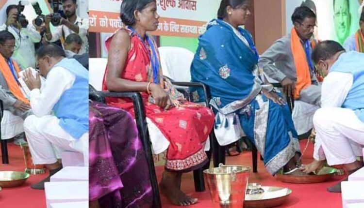 मुख्यमंत्री विष्णु देव साय ने प्रधानमंत्री आवास योजना के हितग्राहियों के पांव पखारकर जनसेवा का दिया अद्वितीय उदाहरण