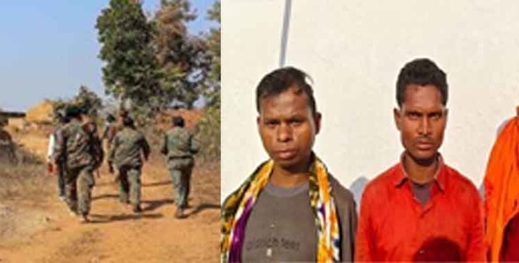 अभियान से वापसी के दौरान नैनपाल व पुलसुमपारा गंगालुर के बीच पुलिस पार्टी को देखकर छिपते हुए भाग रहे तीन संदिग्ध व्यक्ति दिखे जिन्हें घेराबंदी कर पकड़ा गया। पकड़े गए व्यक्तियों से पूछताछ करने पर अपना नाम बुधराम कोरसा पिता सुक्कू कोरसा उम्र 26 निवासी गायतापारा मुनगा, छोटू लेकाम पिता मंगू लेकाम उम्र 29 निवासी गायतापारा मुनगा व लखन कुंजाम पिता स्व. हुंगा कुंजाम उम्र 27 निवासी गायतापारा मुनगा थाना क्षेत्र गंगालुर का होना बताया। पकड़े गए नक्सलियों के कब्जे से प्रतिबंधित विस्फोटक सामग्री, टिफिन बम, कॉर्डेक्स वायर, सेफ्टी फ्यूज व प्रतिबंधित संगठन के प्रचार प्रसार की सामग्री बरामद की गई है। पकड़े गए नक्सलियों के विरुद्ध गंगालुर थाना में विस्फोटक पदार्थ अधिनियम की धाराओं में विधिक कार्यवाही के बाद न्यायिक रिमांड पर मुख्य न्यायिक मजिस्ट्रेट के न्यायालय दंतेवाड़ा के समक्ष पेश किया गया हैं।