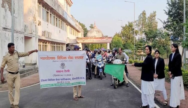 मध्यप्रदेश राज्य विधिक सेवा प्राधिकरण, जबलपुर के निर्देशन में एवं प्रधान जिला एवं सत्र न्यायाधीश/अध्यक्ष जिला विधिक सेवा प्राधिकरण नीना आशापुर के मार्गदर्शन में विधिक सेवा दिवस के उपलक्ष्य में  04.11.2024 से 09.11.2024 तक न्यायोत्सव विधिक सेवा सप्ताह के अंतर्गत जिला मुख्यालय स्तर पर प्रशासन एवं पुलिस विभाग के सहयोग से विधिक सेवा जागरूकता बाईक रैली के माध्यम से न्यायोत्सवः विधिक सेवा सप्ताह कार्यक्रम का शुभारंभ नीना आशापुरे प्रधान जिला न्यायाधीश/अध्यक्ष जिला विधिक सेवा प्राधिकरण द्वारा हरी झंडी दिखाकर बाईक रैली का शुभारंभ किया गया। जिसमें पैरालीगल वालेंटियर्स एवं लीगल एड डिफेंस काउंसिल/पैनल अधिवक्ता तथा न्यायालयीन/विभागीय अधिकारी एवं कर्मचारीगण तथा एनजीओ एवं स्वयसेवी संगठन सम्मिलित होकर बाईक रैली को नगर भम्रण हेतु रवाना किया गया। उक्त बाईक रैली नगर के विभिन्न मार्गो से होते हुए पुनः जिला न्यायालय परिसर में समाप्त हुई।