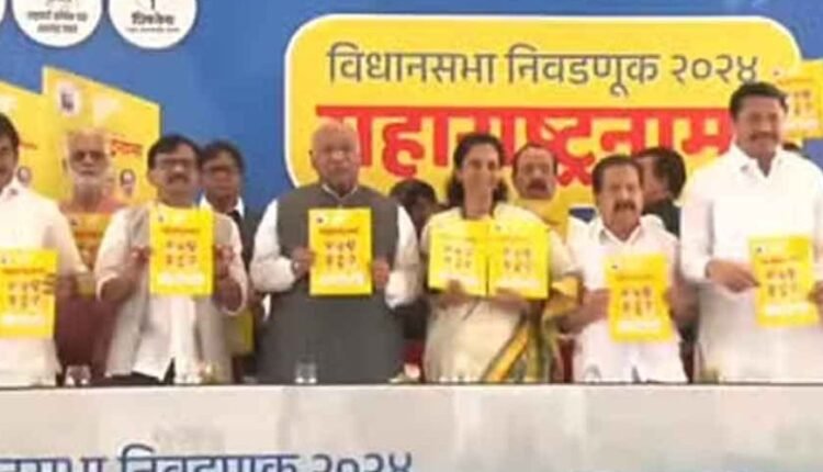 महाविकास अघाड़ी ने अपने घोषणा पत्र को ‘महाराष्ट्र नामा’ शीर्षक दिया। घोषणा पत्र जारी करने के दौरान कांग्रेस अध्यक्ष मल्लिकार्जुन खरगे के साथ शिवसेना यूबीटी नेता संजय राउत, एनसीपी एसपी नेता सुप्रिया सुले, महाराष्ट्र कांग्रेस अध्यक्ष नाना पटोले सहित कई शीर्ष नेता मौजूद रहे। मल्लिकार्जुन खरगे ने कहा कि ‘महाराष्ट्र की प्रगति और विकास के लिए हमारे पास पांच स्तंभ हैं, जो कृषि और ग्रामीण विकास, उद्योग और रोजगार, शहरी विकास, पर्यावरण और लोक कल्याण पर आधारित हैं।’ घोषणा पत्र जारी करते हुए कांग्रेस अध्यक्ष मल्लिकार्जुन खरगे ने कहा कि ‘बेरोजगार युवाओं को 4000 रुपये मासिक वजीफा दिया जाएगा। 25 लाख रुपये की हमारी स्वास्थ्य बीमा योजना राजस्थान में अशोक गहलोत द्वारा शुरू की गई थी और इसे महाराष्ट्र में भी लागू किया जाएगा। हम मुफ्त दवाइयां भी उपलब्ध कराने का वादा करते हैं। हमने जाति जनगणना करने का फैसला किया है और हम तमिलनाडु की तरह आरक्षण पर 50% की सीमा को हटा देंगे।’