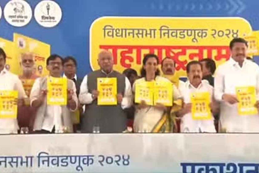 महाराष्ट्र विधानसभा चुनाव के लिए महा विकास अघाड़ी गठबंधन ने अपना घोषणा-पत्र जारी कर दिया। इस दौरान पार्टी अध्यक्ष मल्लिकार्जुन खरगे ने कहा कि ‘आज हम महाराष्ट्र चुनाव के लिए घोषणा पत्र जारी कर रहे हैं। महाराष्ट्र का चुनाव देश के लिए बहुत महत्वपर्ण चुनाव है। यह चुनाव देश का भविष्य बदलने वाला चुनाव है। अगर महाराष्ट्र में हम महा विकास अघाड़ी की सरकार लाएंगे तभी हम यहां एक स्थिर, अच्छा सुशासन दे पाएंगे।’