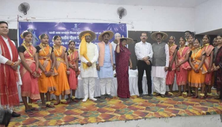 जिलें भर में भगवान बिरसा मुण्डा की जयंती को धूमधाम से जनजातीय गौरव दिवस के रूप में मनाया गया। जिला स्तरीय मुख्य समारोह का आयोजन अटल सामुदायिक भवन बिलौजी में राज्यमंत्री मध्यप्रदेश शासन पंचायत एवं ग्रामीण विकास विभाग श्रीमती राधा सिंह के मुख्य अतिथि में एवं सिंगरौली विधानसभा के विधायक श्री राम निवास शाह, देवसर विधानसभा के विधायक श्री राजेन्द्र मेश्राम, नगर निगम अध्यक्ष देवेश पाण्डेंय, कलेक्टर श्री चन्द्रशेखर शुक्ला, भाजपा जिलाध्यक्ष रामसुमिरन गुप्ता के गरिमामय उपस्थित में आयोजित किया गया। समारोह का शुभारंभ दीप प्रज्ज्वलन कर एवं भगवान बिरसा मुण्डा के छाया चित्र पर मल्यापर्ण कर किया गया। समारोह में एकलव्य विद्यालय की छात्राओं के द्वारा मनमोहक सास्कृतिक कार्यक्रम प्रस्तुत कर अतिथियों का स्वागत किया गया। छात्राओं के द्वारा प्रस्तुत गीतो ने अतिथियों को मत्रमुग्ध कर दिया।