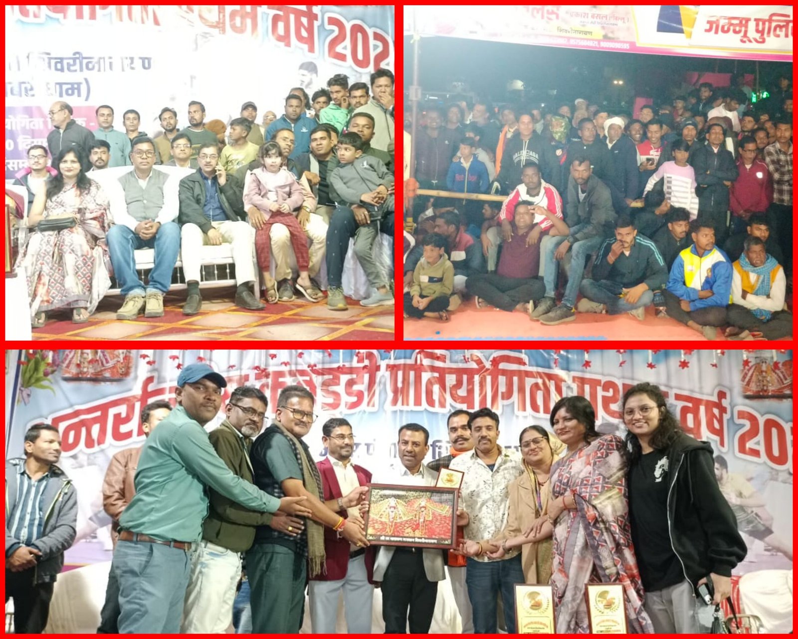शिवरीनारायण : शिवरीनारायण अंतर्राज्यीय कबड्डी प्रतियोगीता आयोजन दिनांक – 20/12/24 से 22/12/2024तक समस्त ग्राम वासी के सहयोग से किया गया, जिसमें उद्घाटन समारोह के मुख्य अतिथि श्री श्री 108 गोपाल दास जी महाराज की गरिमामयी उपस्थिति में सम्पन्न हुआ, एवं समापन समारोह के मुख्य अतिथि एस.के. वैध अपर कलेक्टर जिला जांजगीर चाँपा की उपस्थिति में संपन्न हुआ प्रतियोगिता में -प्रथम पुसरकार 50,000/- एवं ट्रॉफी पुलिस टीम कोलकाता को द्वितीय पुरस्कार 40000 एवं ट्रॉफी गुरुग्राम हरियाणा तृतीय पुरस्कार 20000 एवं ट्रॉफी करबीहा बिलासपुर चतुर्थ पुरस्कार 15000 एवं ट्रॉफी आदर्श क्लब दिल्ली को प्रदान की गई प्रतियोगिता में ऑल राउंडर, बेस्ट कैचर, बेस्ट रेडर का भी ईनाम दिया गया, प्रतियोगिता सफल बनाने हेतु आयोजन समिति संरक्षक मनोज तिवारी अध्यक्ष अजय कुमार कैवर्त्य उपाध्यक्ष सुदर्शन मानिकपुरी सचिव संतराम साहू मुकेश मानिकपुरी विमल सारथी राजू यादव समस्त नगर वासी मौजूद रहे