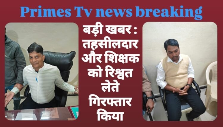 बड़ी खबर : तहसीलदार और शिक्षक को रिश्वत लेते गिरफ्तार किया