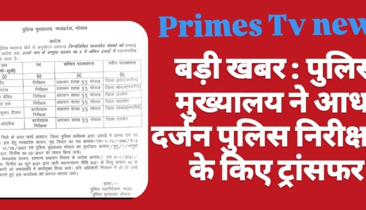 बड़ी खबर : पुलिस मुख्यालय ने आधा दर्जन पुलिस निरीक्षकों के किए ट्रांसफर