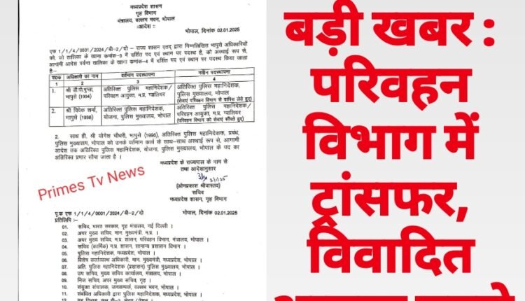 बड़ी खबर : परिवहन विभाग में ट्रांसफर, विवादित आयुक्त बदले