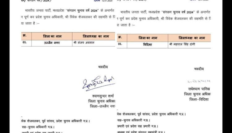 Breaking News: एमपी में बीजेपी जिला अध्यक्षों की घोषणा शुरू भाजपा जिलाध्यक्ष की पहली और दूसरी सूची में उज्जैन नगर और विदिशा के नाम