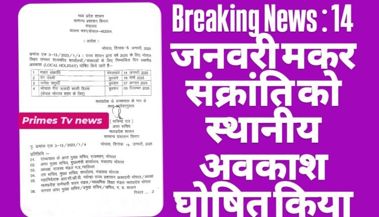Breaking News : 14 जनवरी मकर संक्रांति को स्थानीय अवकाश घोषित किया